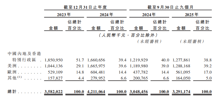 招股书显示,2023年至2025年前三季度,仙乐健康海外收入占比从48.3%增长至61.2%。截至2025年9月底,公司约39.2%的收入来自美洲,17%来自欧洲,5%来自其他地区。