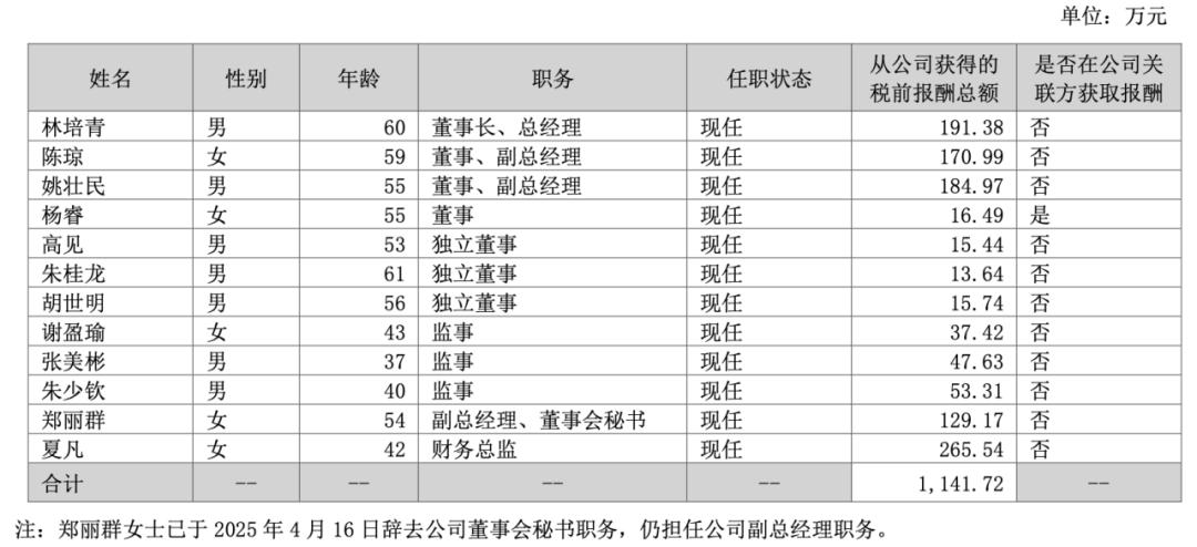 林培青十分厚待姚壮民,姚壮民能拿到比陈琼更高的年薪。招股书显示,2023年-2024年姚壮民年薪分别为187.4万元、196.4万元,陈琼年薪为169.5万元、179.7万元。