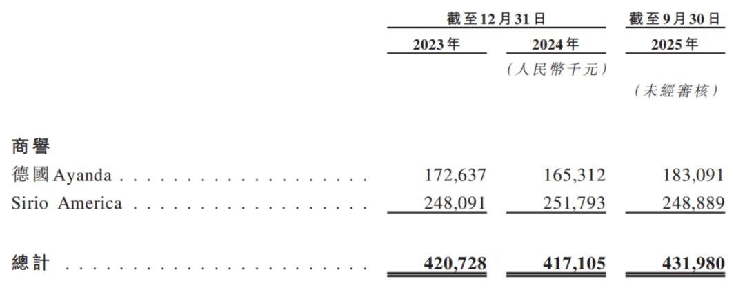 两次收购直接推高了仙乐健康的商誉。截至2025年9月末,公司商誉账面价值高达4.32亿元,其中,最大的组成部分是包括Best Formulations在内的美国业务板块Sirio America,金额为2.49亿元,占总商誉的近60%。