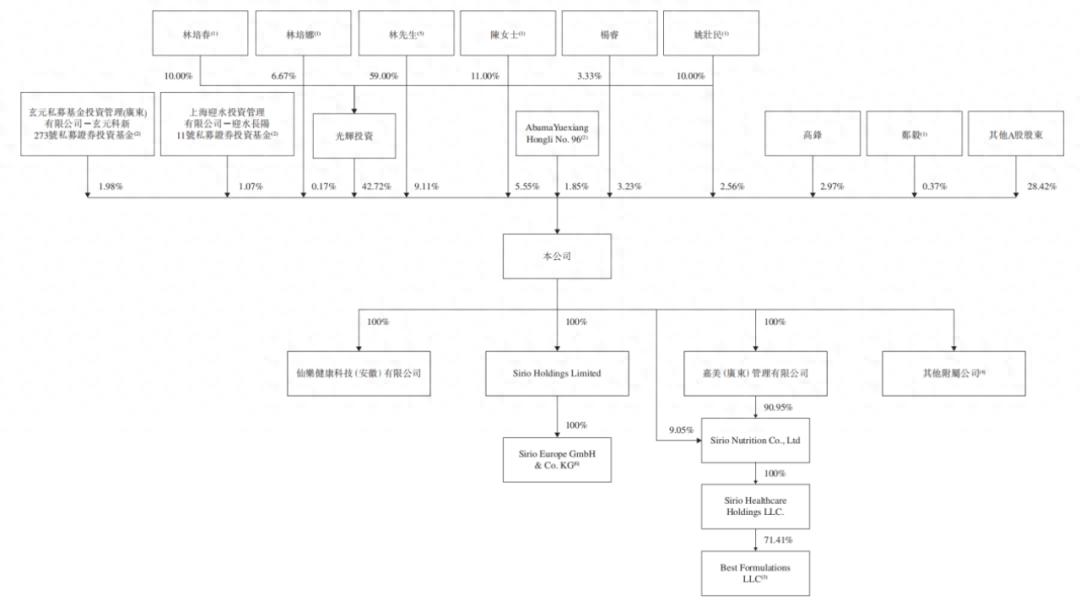 递表前,林培青、陈琼夫妇与光辉投资、阿巴马悦享红利96号构成公司控股股东集团,合共控制59.24%股权。