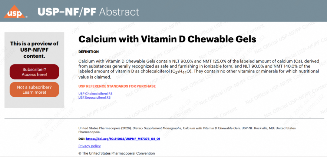 USP公布《Calcium with Vitamin D Chewable Gels》标准
