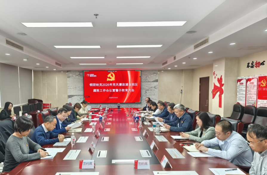 2月9日,钢研纳克召开2026年度党风廉政建设和反腐败工作会议暨警示教育大会,总结2025年工作,部署2026年重点任务,并开展警示教育。钢研纳克党委书记、董事长杨植岗出席会议并讲话。党委副书记、总经理张秀鑫主持会议并传达二十届中央纪委五次全会精神、国务院国资委党委专题学习贯彻习近平总书记重要讲话精神的相关部署要求、集团公司2026年党风廉政建设和反腐败工作会议精神。党委副书记、纪委书记蒋劲锋作纪检工作报告。