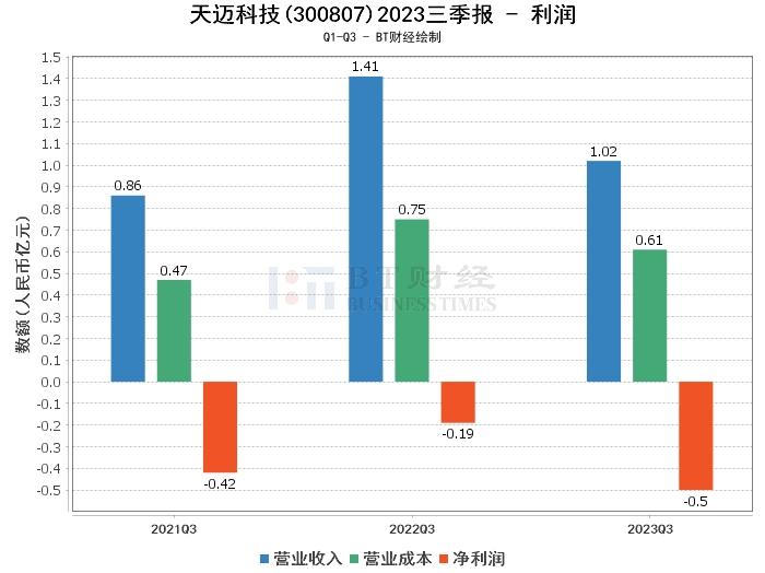 在利润方面,天迈科技2023年三季度的营业收入为1.02亿元,较上年同期的1.41亿元有所减少。营业成本为6102.3万元,相比上年同期的7529.96万元有所减少。毛利率为39.94%,较上年同期的46.69%有所下降。归属于上市公司股东的净利润为-4960.94万元,较上年同期有所减少。