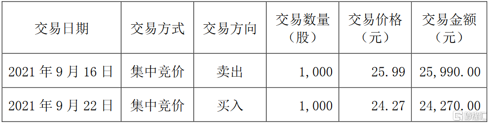 上述交易产生收益为1720元(计算方法:卖出价格*卖出股数-买入价格*买入股数=25.99元/股*1000股-24.27元/股*1000股=1720元)。周玉銮在确认该事项后,第一时间主动将此次交易所得收益人民币1720元上交给公司。