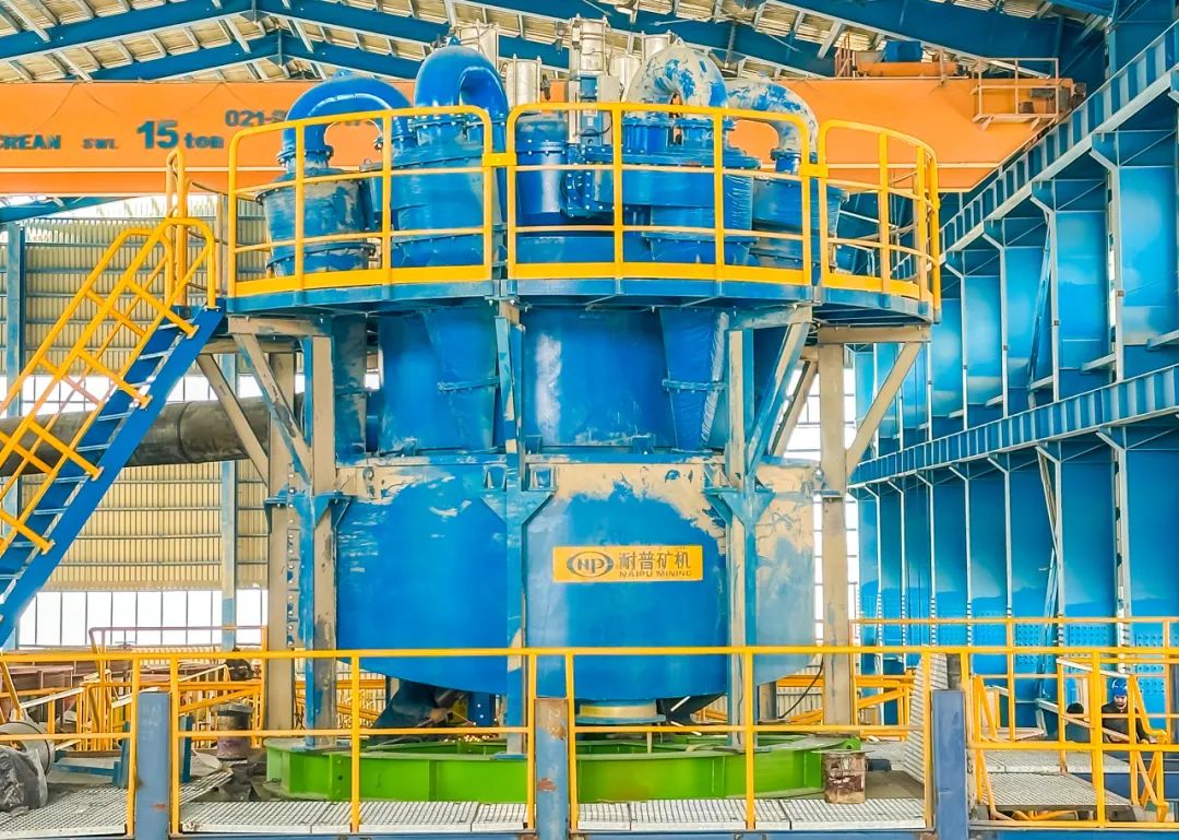 耐普提供的渣浆泵与旋流器设备,将负责选矿厂磨机排料矿浆输送及分级作业,其中550NZJM处理量达4500m3/h,配套电机功率达1000Kw。随着设备的投产运营,将满足客户单日1.6万吨处理量的生产需求。