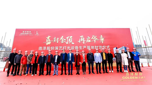 2023年1月3日,浩洋股份演艺灯光设备生产基地举行封顶仪式。