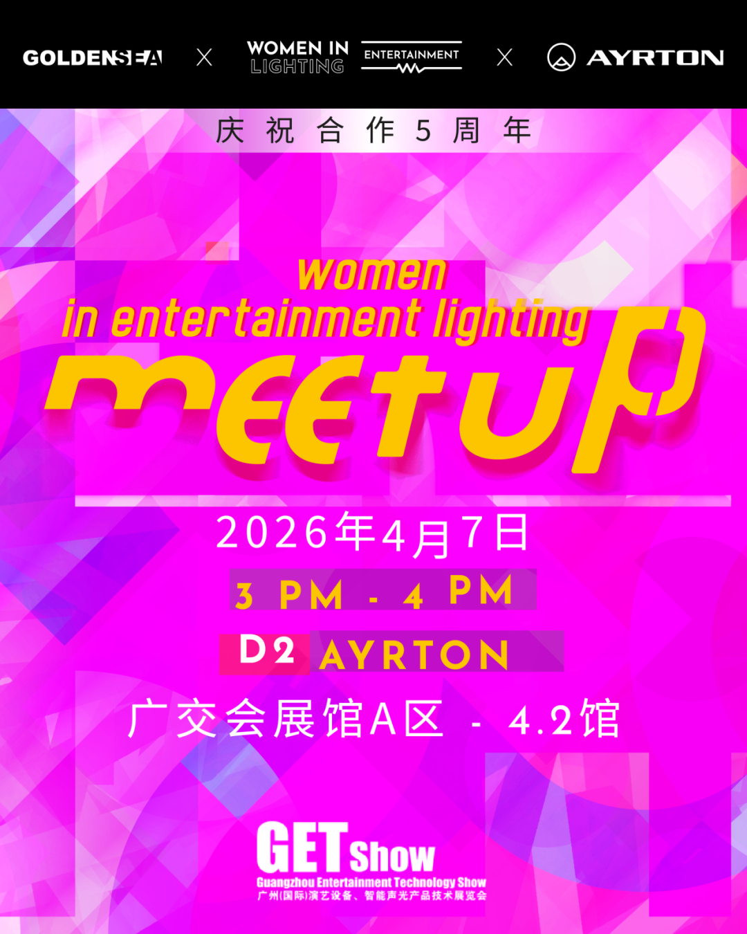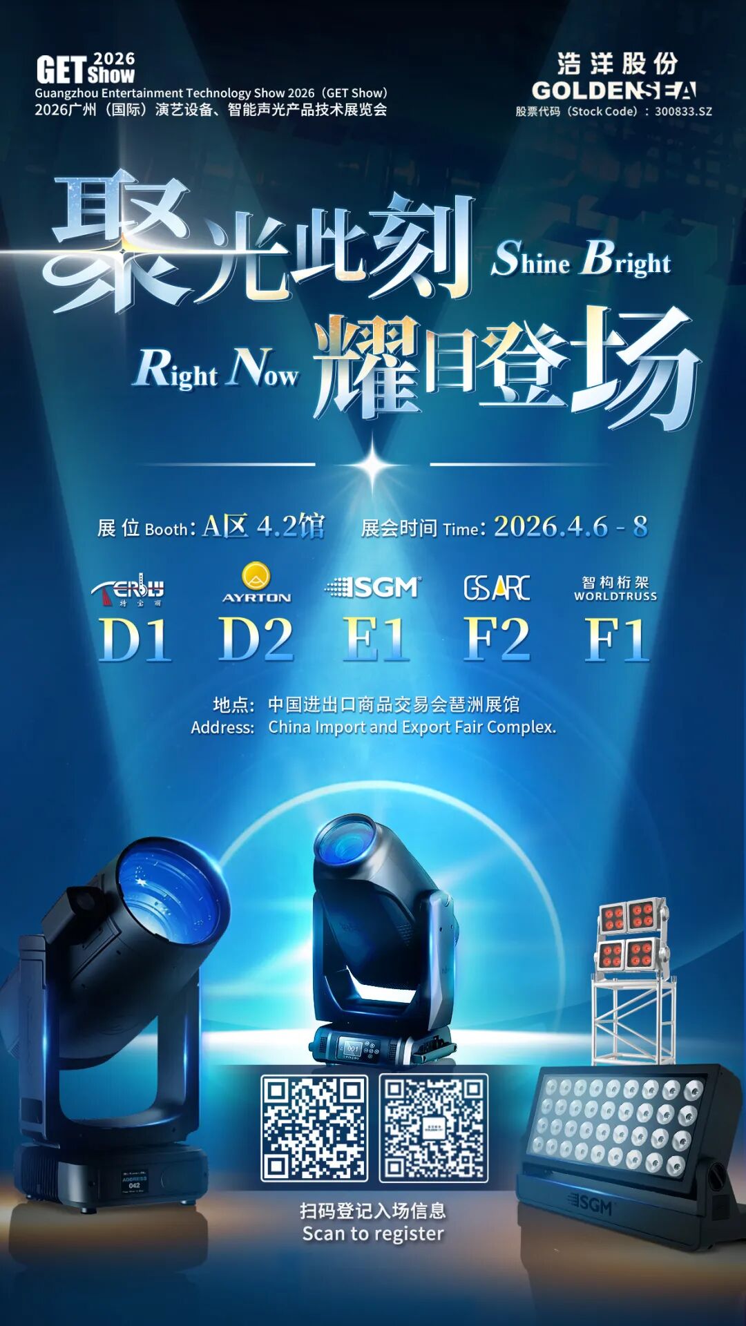 4月6日至8日,2026 GET Show广州国际专业灯光、音响展览会将在广交会展馆盛大启幕,作为全球演艺设备领军企业,浩洋股份携旗下六大核心品牌重磅参展,不仅带来前沿光影技术与创新方案,更携手旗下国际高端演艺灯光品牌Ayrton,精心筹备WIL(Women in Lighting)娱乐照明交流会,以光为桥,致敬行业杰出女性力量。