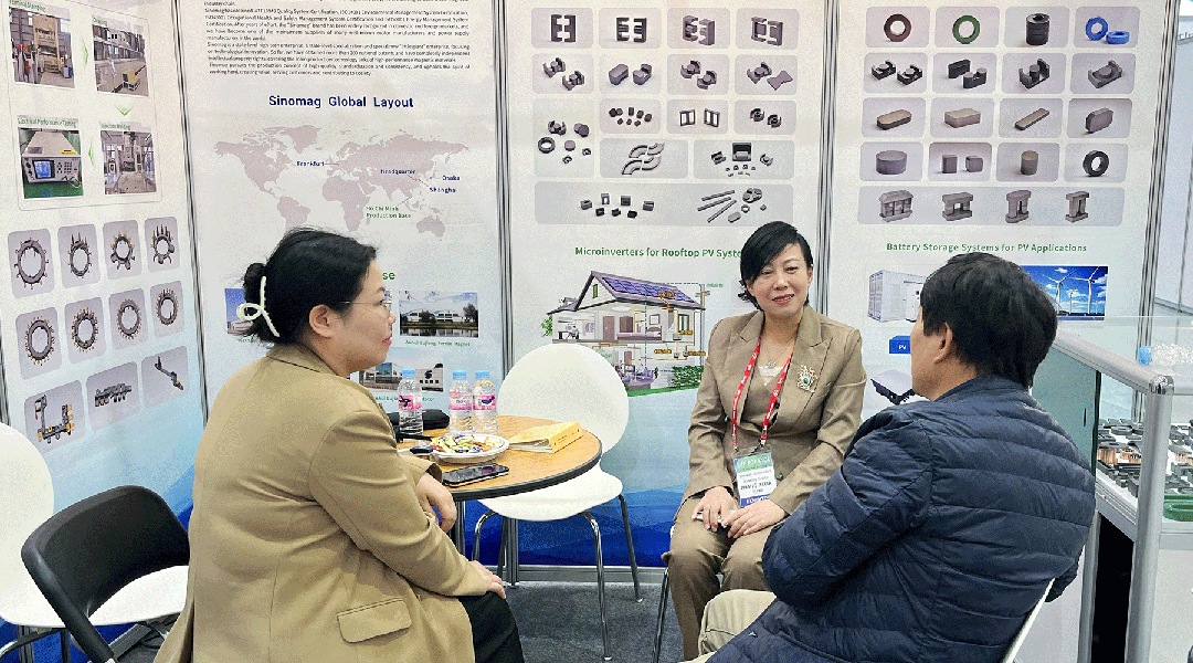 龙磁科技深耕韩国马达永磁市场二十多年,凭借优质的产品和综合竞争力,成为LG、三星、现代、起亚等几十家大中型客户的核心供应商。本次展会龙磁科技主要面向韩国市场展示和宣传公司上市后开发的铁氧体和金属软磁产品,软磁产品广泛应用于家电、新能源汽车、光伏、5G通讯、充电桩等领域。