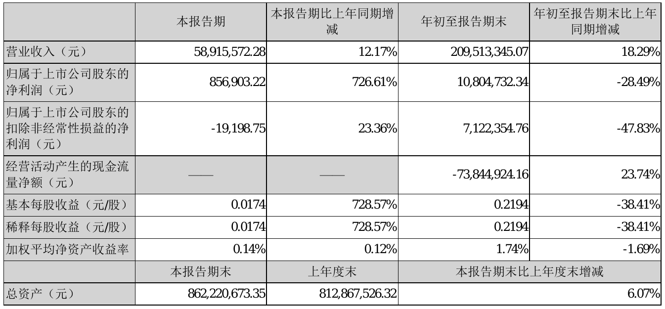10月25日,佰奥智能(300836)近日发布2021年前三季度报告,报告期内营业收入209,513,345.07元,同比增加18.29%;净利10,804,732.34元,同比净利减少28.49%。