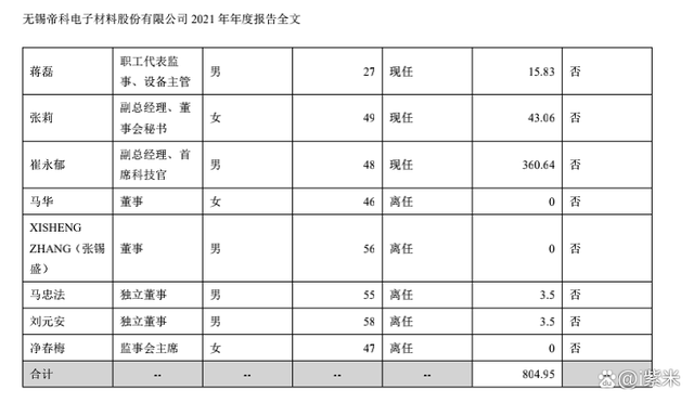 年报显示,公司董事、监事和高级管理人员报酬总额为804.95万元。董事长、总经理史卫利2021年从公司领取薪酬为112.09万元,董事、研发总监、副总经理(产品)张洪旺2021年领取薪酬为89.19万元,董事、副总经理、财务负责人王姣姣2021年领取薪酬为55.09万元,副总经理、首席科技官崔永郁2021年领取薪酬为360.64万元。