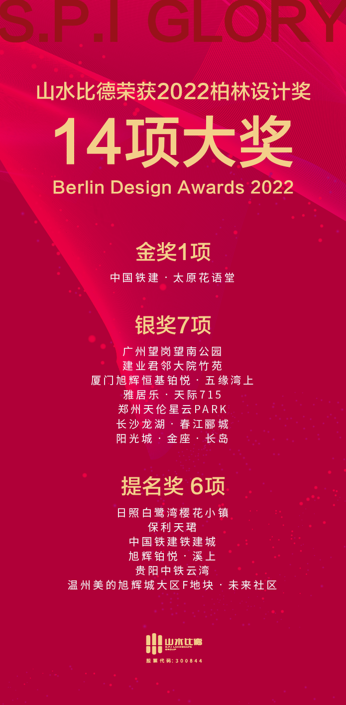 近日,2022年柏林设计奖正式公布了最终获奖名单。山水比德申报的14个项目共斩获1项金奖、7项银奖和6项提名奖。