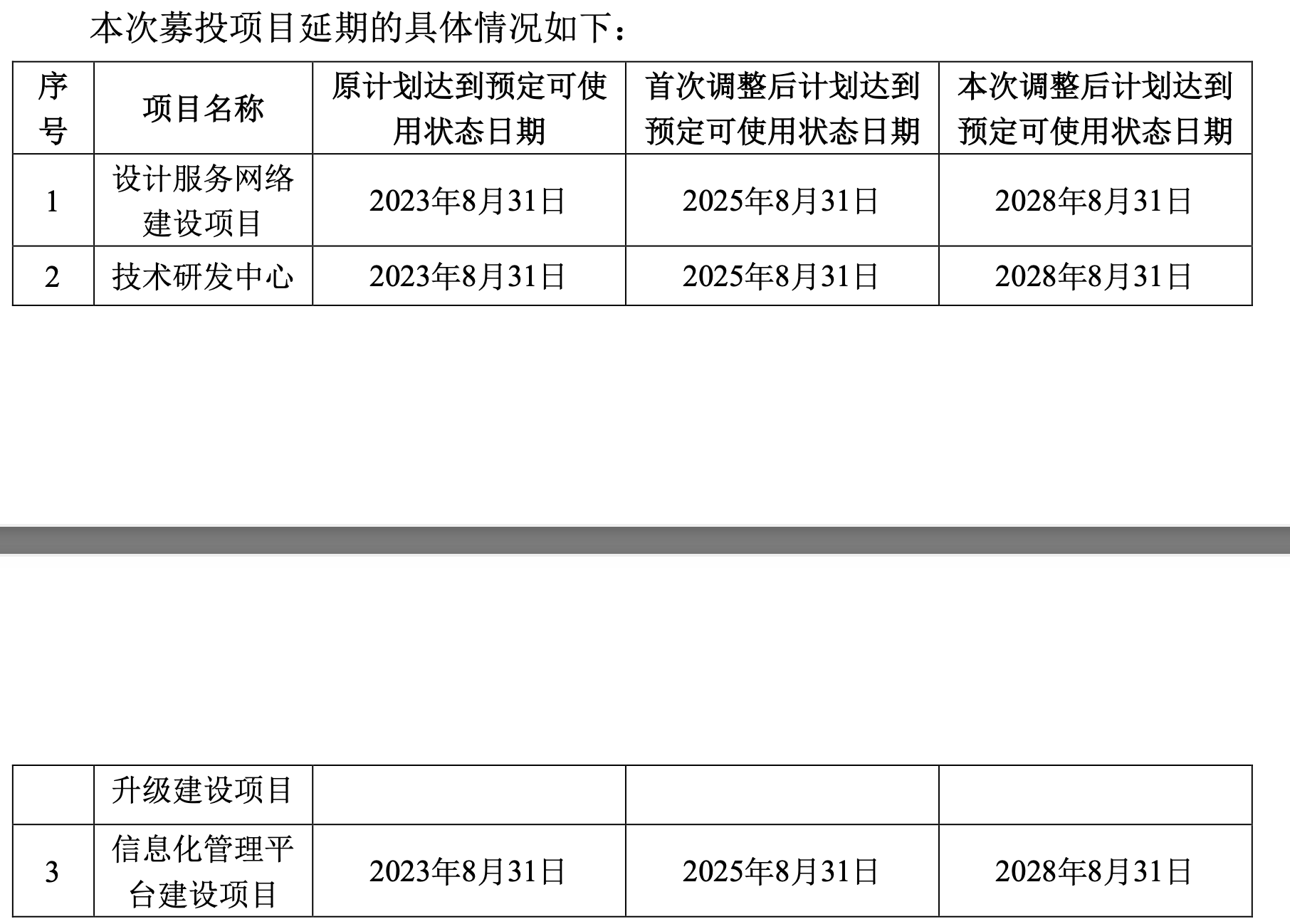 但在2022年8月,山水比德将总部运营中心建设项目达到预定可使用状态日期延期至2024年8月31日,2024年6月再次延期至2026年8月31日;2023年8月,山水比德将其余三个募投项目达到预定可使用状态日期延期至2025年8月31日,2025年7月再次延期至2028年8月31日。因此截至目前,山水比德四个募投项目都没完成。