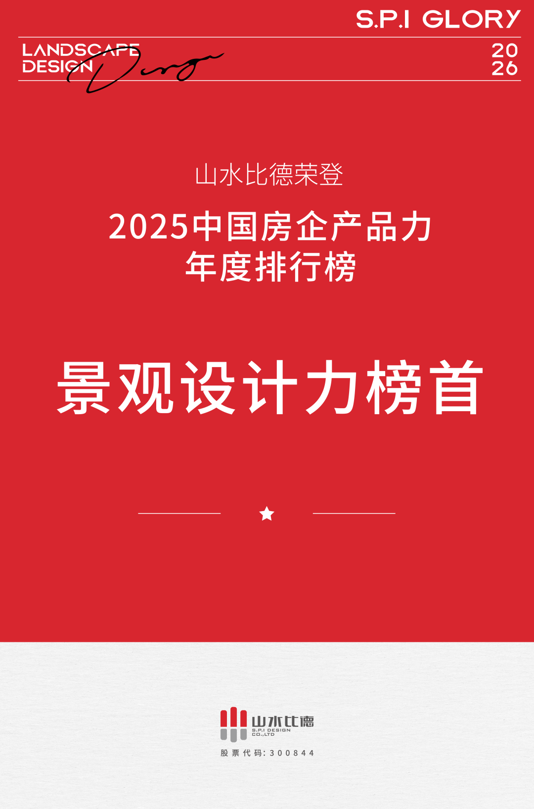 近日,由金盘居住研究院测评发布的《2025中国房企产品力年度排行榜》 中,广州山水比德设计股份有限公司凭借卓越的创新实力与深厚的专业积淀,荣登景观设计力榜首。