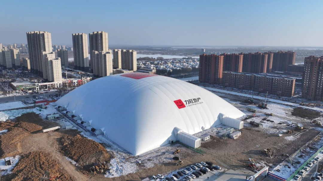 当“冬季无法施工”成为整个东北地产行业的惯性定律,力旺却选择以问题为导向,不断开展技术研究,以时间换品质——在工期高度紧张、节点目标明确的前提下,力旺地产团队坚持标准不降、品质不让,在复杂条件中持续拆解问题、解决问题,通过项目方、设计与施工多方协同推进,打造出了一座覆盖2.5万平方米的巨型气膜,为工地撑起一个保温、阻燃、耐腐蚀且隔音的“穹顶”,一举打破了季节的桎梏,争取到了100多天的冬季施工时间。这并不只为确保宜居路项目示范区能够按计划、按标准完整呈现,更为项目的极致打磨赢得了更充裕的周期。