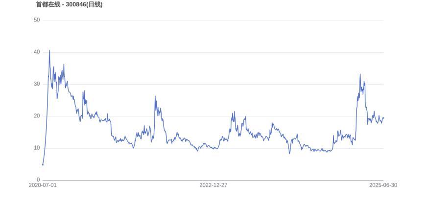 从上市首日至今,首都在线的市值实现了3.90倍的增长,显示出资本市场对公司发展前景的认可。2020年8月5日,首都在线的市值巅峰达到179.46亿元,股价也顺应升至43.63元。而至6月30日收盘,首都在线的股价为19.46元,市值为97.67亿元,相比峰值时期市值减少81.79亿元,市值蒸发了45.57%。