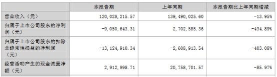 锦盛新材(300849.SZ)近日披露2023年半年度报告。上半年,公司营业收入1.20亿元,同比下降13.95%;归属于上市公司股东的净利润-905.06万元,同比下降434.89%;归属于上市公司股东的扣除非经常性损益的净利润-1312.49万元,上年同期为-260.89万元;经营活动产生的现金流量净额291.30万元,同比下降85.97%。