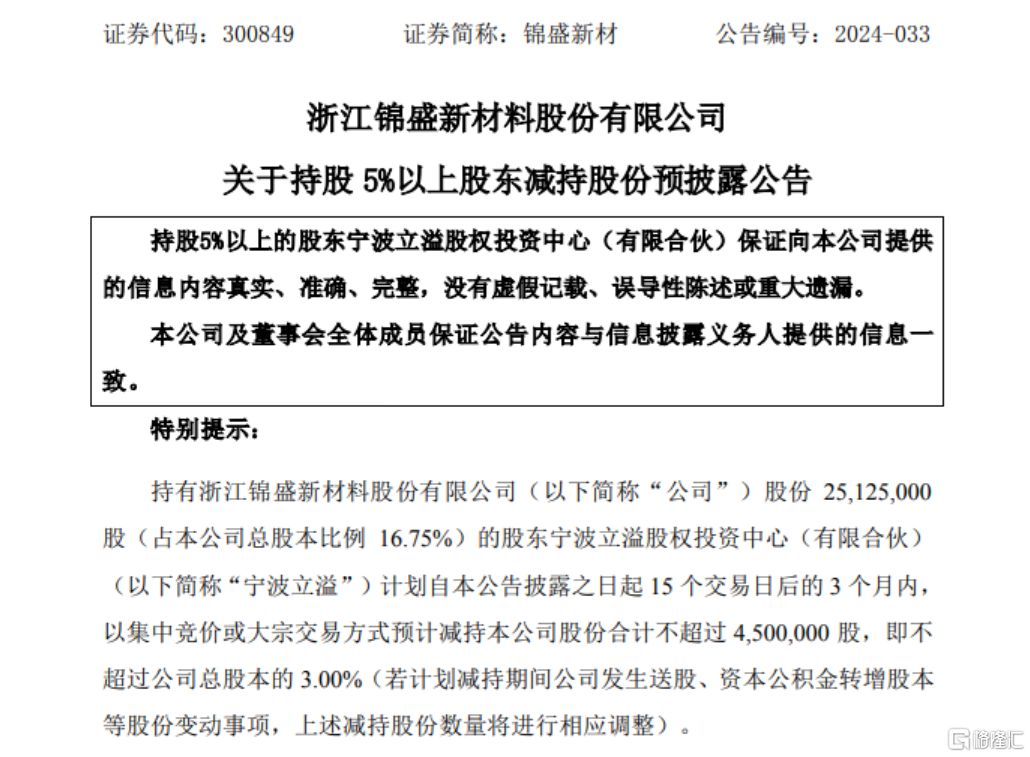 针对此次立案,锦盛新材回应称,调查期间将积极配合证监会各项工作,严格按照规定和监管要求履行信息披露义务。同时强调,目前公司各项生产经营活动均正常开展,上述事项不会对公司的正常生产经营活动产生重大影响。