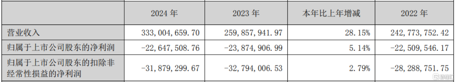 到了2024 年,公司营收虽大幅增长28.15%至3.33亿元,净利润仍亏损2264.75万元,三年累计亏损超6900万元。