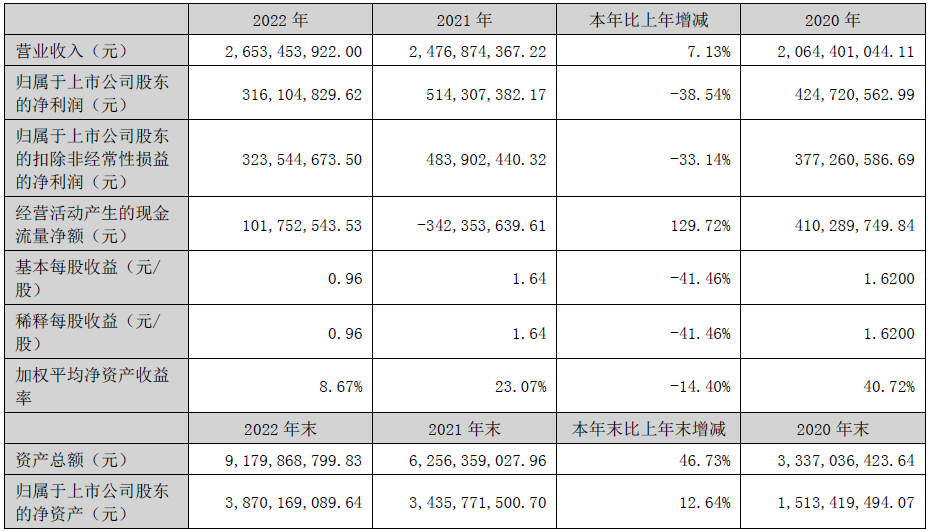 3月31日,新强联发布2022年年度报告。报告显示,2022年,新强联实现营收26.53亿元,同比增长7.12%;实现归属于上市公司股东的净利润3.16亿元,同比下降38.54%。