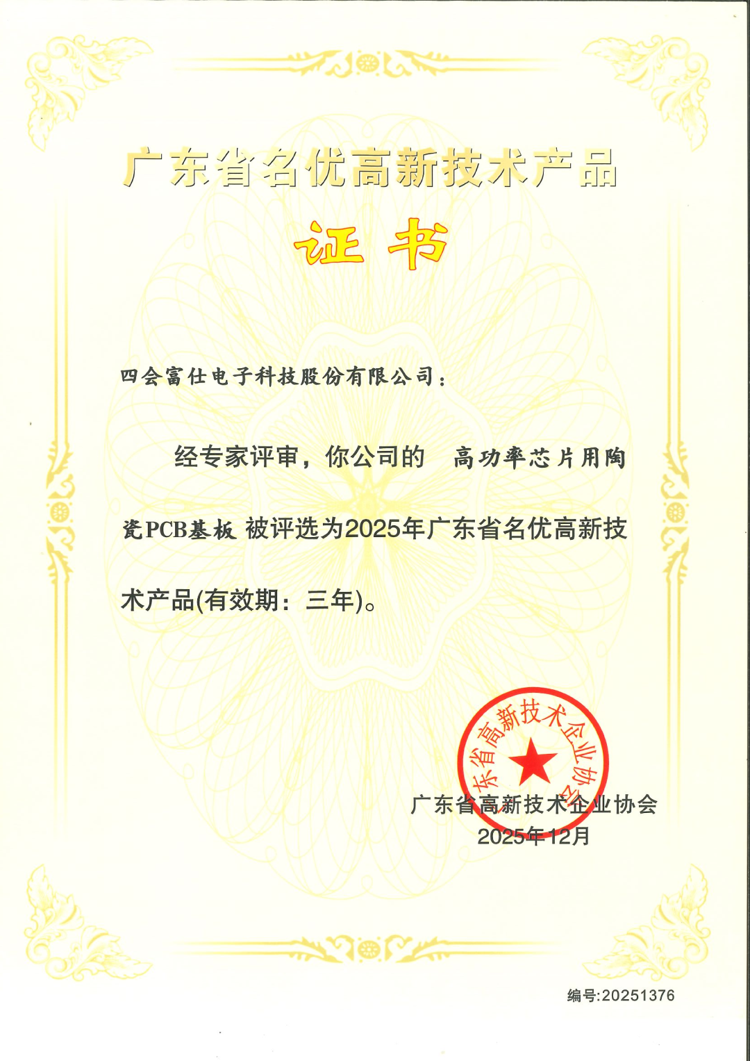 近日,在2025年广东省名优高新技术产品评选中,我公司研发的“1.6T高速光模块PCB基板”“新能源汽车用磁环嵌埋电感PCB基板”“高功率芯片用陶瓷PCB基板”三项产品成功入选,标志着公司在埋嵌基板、陶瓷基板、光模块基板等新兴领域实现了新的技术突破。
