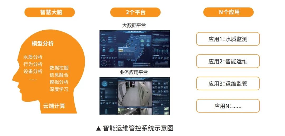 系统拥有智慧大脑,能够进行模型分析、水质分析、行为分析、设备分析等多个领域应用。数据挖掘、信息融合、模拟分析、深度学习、云端计算等技术相互融合,通过大数据平台和业务应用平台,进行水质监测、智能运维和监管,提供多维度的洞察和决策支持。