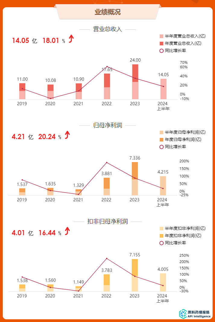 8月17日科思股份披露2024年半年报,公司实现营业总收入14.05亿元,同比增长18.01%;归母净利润4.21亿元,同比增长20.24%;扣非净利润4.01亿元,同比增长16.44%。