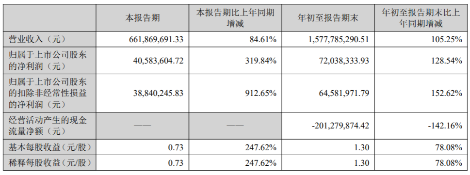 卡倍亿前三季度实现营业收入约15.78亿元,同比增长105.25%;前三季度归属于上市公司股东的净利润约为7203.83万元,同比增长128.54%。