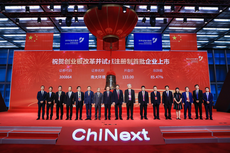 南京大学资产经营有限公司所属企业、南京大学环境规划设计研究院股份公司(“南大环境”,股票代码:300864)作为我国资本市场创业板上市规则改革后的首批注册制上市企业之一在深交所正式登陆,成功挂牌上市。