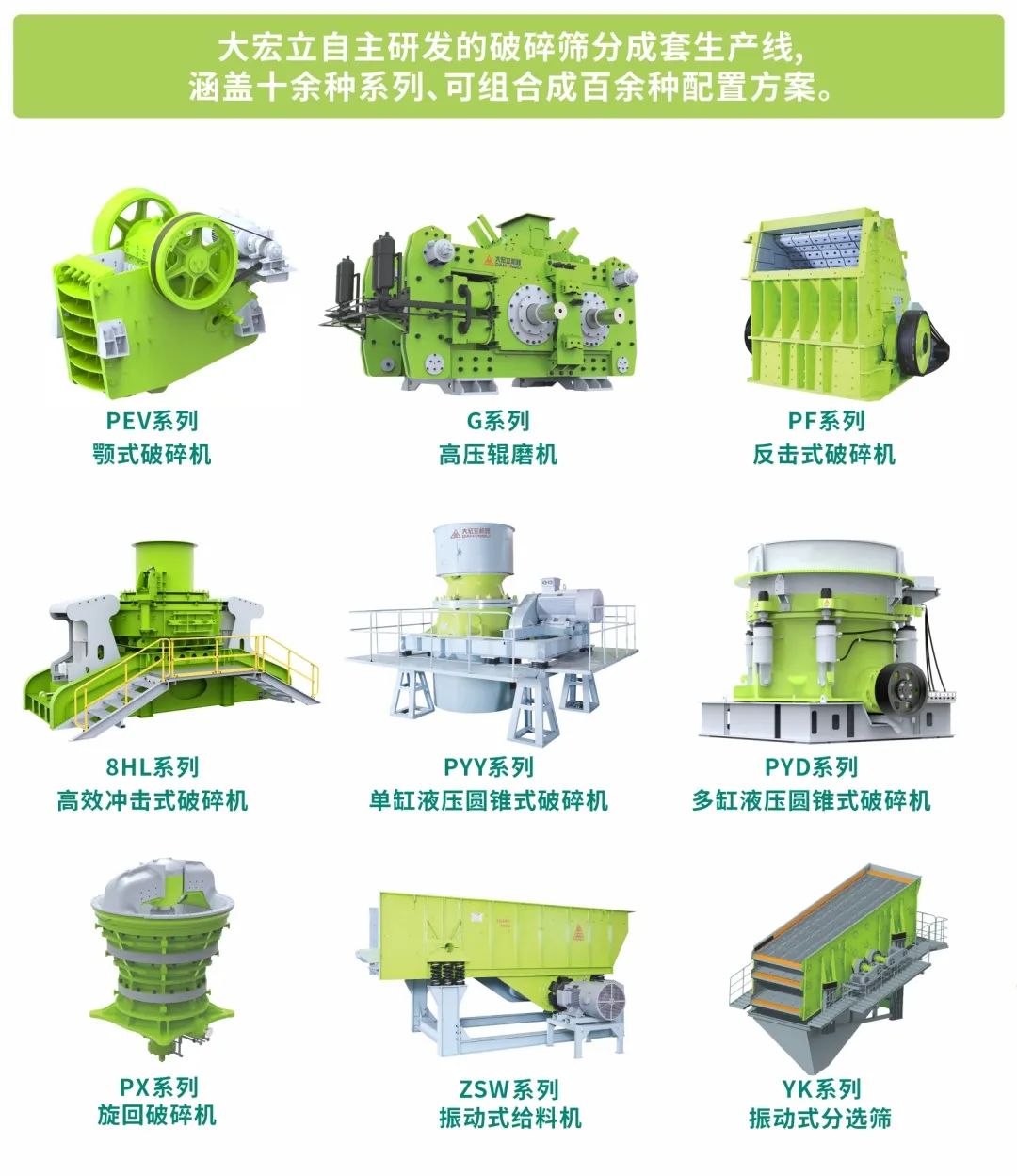 依托 27万平方米三大研发制造基地,300+项专利技术(含30项发明专利),大宏立打造覆盖矿山破碎筛分全产业链的成熟产品体系。
