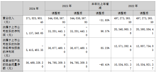 2024年,大宏立实现营业收入3.72亿元,同比下降31.65%;归属于上市公司股东的净利润为-113.73万元,上年同期为-3,320.14万元;归属于上市公司股东的扣除非经常性损益的净利润为-541.55万元,上年同期为-3,667.75万元;经营活动产生的现金流量净额为5,646.93万元,同比下降40.41%。