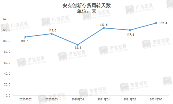 从衡量产品畅销的另一个指标存货周转情况看,安克创新情况并不乐观。Q3公司的存货周转天数为132.4天,较去年同期多出了近20天,而在同比增速上,公司前三季度存货增长81.22%,大幅高于40%的营收增幅。
