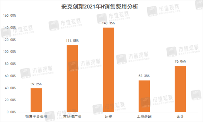 进一步拆解,造成公司销售费用率大增的主要有“运费及市场推广费用”两部分。
