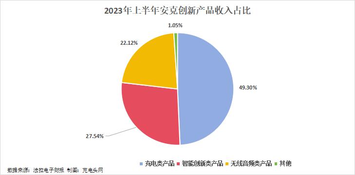 2023H1 公司充电类产品营收最高,公司接近一半的营收是来自于该产品。充电类产品 2023H1 营收 34.83 亿元,占总营收的比例是 49.3%;智能创新类产品营收 19.46 亿元,占总营收的比例是 27.54%;无线音频类产品营收 15.63 亿元,占总营收的比例是 22.12%。