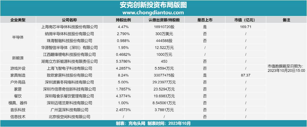 据充电头网了解,安克创新对外投资的这 14 家企业中,半导体企业有 4 家,占比 28.57%;新能源企业 2 家,占比 14.29%;游戏外设、家具制造、户外用品、家居、餐饮、模具器件、音乐科技、信息技术企业各 1 家,各占比 7.14%。