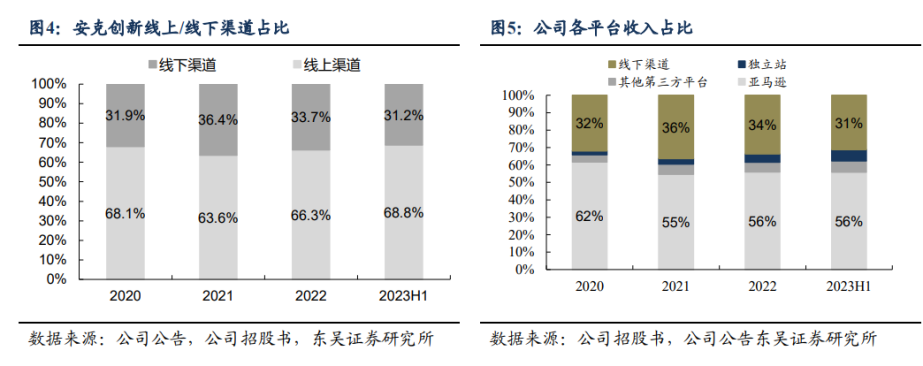 2023年H1公司线上渠道收入48.6亿元,同比增长28.3%,线上渠道占总收入达69%。公司线上渠道又以亚马逊为主,2023年H1公司亚马逊渠道收入39.5亿元占总收入56%。