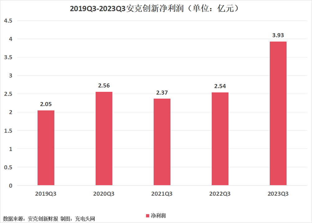 2019-2023年第三季度单季度安克创新分别实现归母净利润2.05亿元、2.56亿元、2.37亿元、2.54亿元、3.93亿元,2020Q3、2021Q3、2022Q3、2023Q3同比变动分别为24.91%、-7.40%、7.20%、54.61%。