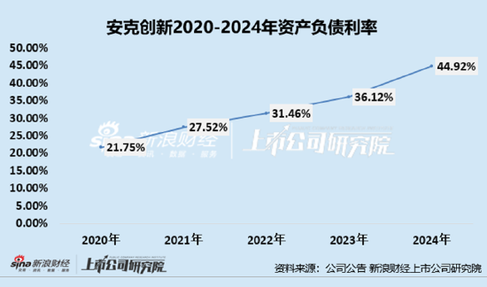 通过公司资产负债状况,可以看出,安可创新的资产负债率处于持续爬坡中,2020-2024年,公司的资产负债率分别为21.75%、27.52%、31.46%、36.12%、44.92%。除此之外,公司的流动比率也是持续下滑,由2022年的3.27下降至2024年的2.1。
