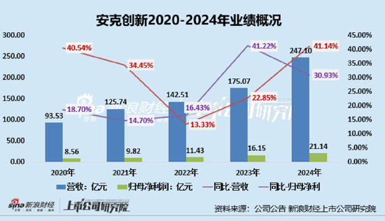 近年来,安克创新的业绩表现尚可。2022-2024年,公司的营收分别为142.51亿元、175.07亿元、247.1亿元,分别同比增长13.33%、22.85%、41.14%;归母净利润分别为11.43亿元、16.15亿元、21.14亿元,分别同比增长16.43%、41.22%、41.14%。