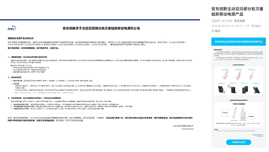 在本次事件中,安克在风险识别与申报阶段,在质量安全自查中发现供应商提供的行业通用电芯存在“未经批准的原材料变更”,长期使用可能导致多种风险。之后立即锁定涉事产品批次,终止与问题供应商合作,并下架所有相关产品。