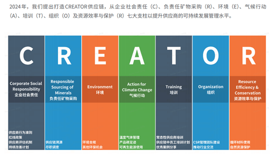在供应链建设方面,报告提出打造CREATOR供应链,从多方面提升供应商可持续发展管理水平,包括负责任矿物采购、环境管理等。
