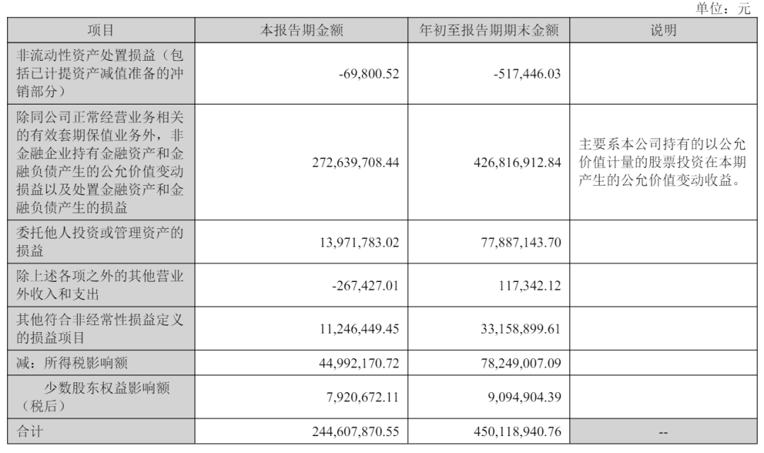 安克创新2025年前9个月计入的非金融企业持有金融资产和金融负债产生的公允价值变动损益以及处置金融资产和金融负债产生的损益为4.27亿元,其中,第三季度计入2.73亿元,主要系本公司持有的以公允价值计量的股票投资在本期产生的公允价值变动收益。