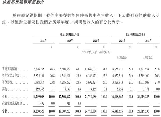 具体来看,按产品及服务类型划分,公司报告期内的主要收入来自智能充电储能类产品,其次为智能家居及创新类产品,再次为智能影音类产品。