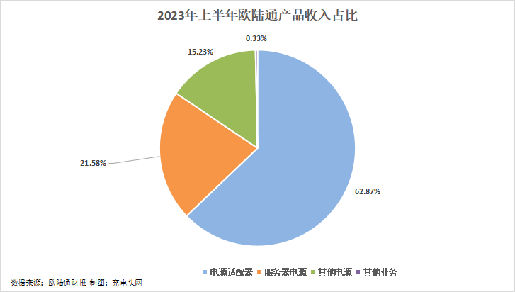 2023年上半年公司营收最高的产品是电源适配器,超过50%的营收是来自于该产品。电源适配器营收为8.14亿元,占总营收的比例为62.87%;服务器电源产品营收2.8亿元,占总营收的比例为21.58%;其他电源产品实现营收1.97亿元,占总营收的比例为15.23%。