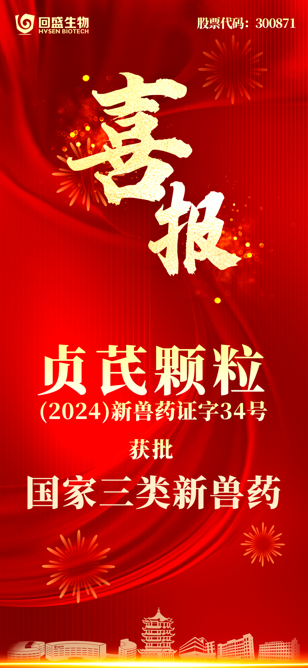 近日,根据《兽药管理条例》和《兽药注册办法》规定,经审查,武汉回盛生物科技股份有限公司申报的贞芪颗粒正式获批国家三类新兽药证书。