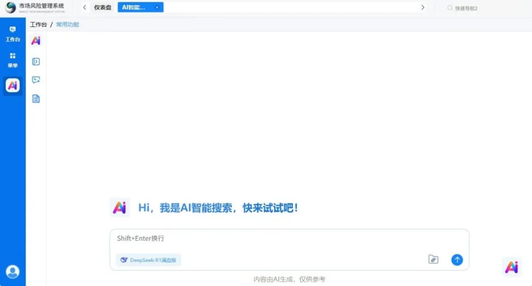 近期,天阳科技自主研发的天阳天锐市场风险管理系统(以下简称“天锐系统”)结合天智大模型平台,已成功完成与DeepSeek大模型的深度融合。通过与DeepSeek大模型核心优势的叠加,该系统可以对海量数据进行快速、准确的理解和分析,并通过深度的逻辑推理和机器学习,对各种复杂情况进行预测和判断,从而更全面、深入地洞察市场动态和风险状况,为金融机构构建合规、高效、准确的市场风险管理体系。