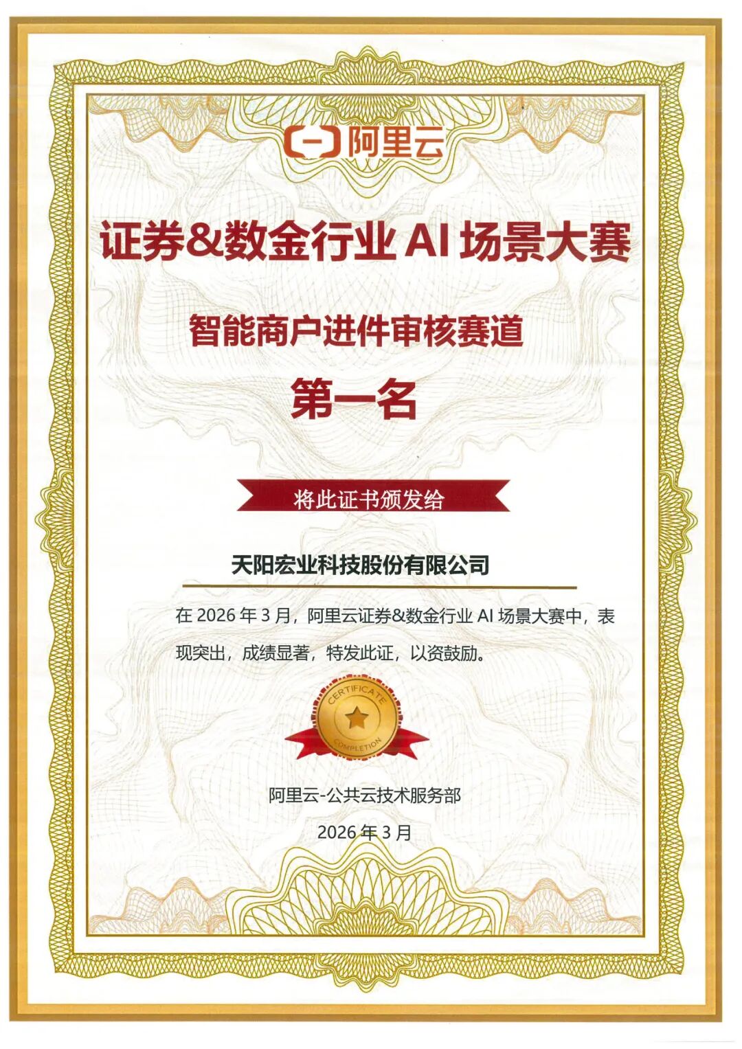 近期,由阿里云主办的“证券&数字金融行业AI场景生态大赛”圆满落幕。本次比赛围绕“智能客服、智能商户进件审核、智能投研、智能投顾、智能信息挖掘”五大高频应用场景展开比拼。凭借在营销、信贷等高价值领域具备专业的智能体设计及实战经验,天阳科技以资产保全智能体案例,荣获智能商户进件审核赛道第一名。此前,在阿里云“银行AI场景生态大赛”中,天阳科技已拿下智能营销赛道第一名、智能尽调赛道第二名的优异成绩。
