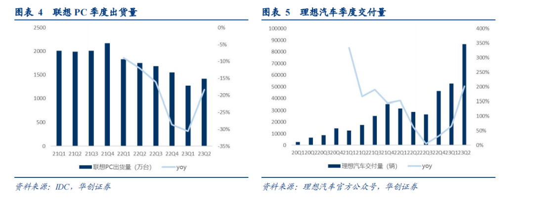 2)新能源汽车:主要客户理想汽车23年H1交付量13.9万辆,同比增长130%,预计公司新能源汽车行业收入同比增长超过100%,23Q1、Q2理想汽车交付量分别为5.26、8.65万辆,同比分别增长66%、206%,大幅好于行业。预计随着理想车型的升级迭代,与产能提升,后续出货量增加,其对供应链服务需求量仍将不断增长,公司在与理想汽车合作基础良好,未来仍有快速增长的潜力。
