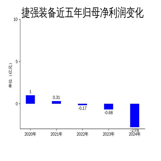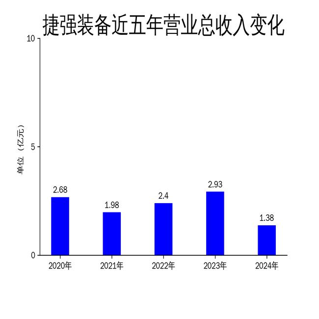 2025年5月2日,捷强装备发布了2024年年报。报告显示,公司2024年实现营业总收入1.38亿元,同比下降52.81%;归属净利润为-2.78亿元,同比大幅下降309.78%。扣非净利润同样表现不佳,为-2.92亿元,同比下降160.35%。公司主营业务为核生化安全装备及核心部件的研发、生产、销售和服务,尽管业务方向未变,但受多重因素影响,收入和利润均出现大幅下滑。