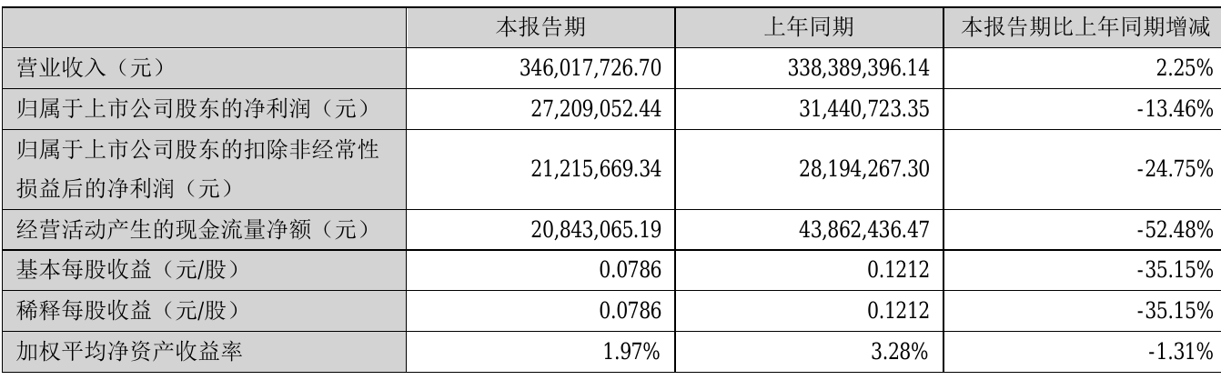 8月23日,龙利得(300883)近日发布2021年半年度报告,报告期内营业收入346,017,726.70元,同比增加2.25%;净利27,209,052.44元,同比净利减少13.46%。