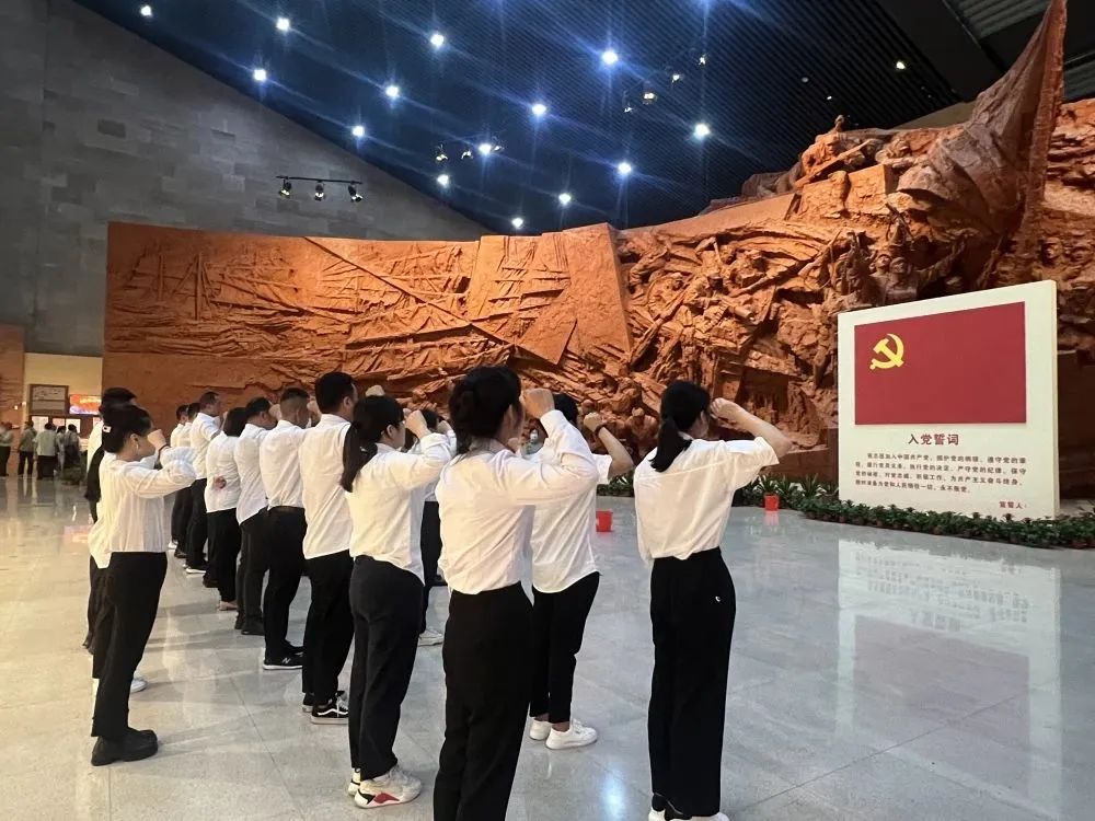 渡江战役纪念馆是安徽省著名的爱国主义教育基地和党史教育基地,记录了渡江战役的全过程,陈列了重要的文物和史料文献,再现了人民战争的伟大胜利。“胜利之师”雕像前,党员们在支部书记向存林的带领下,面对庄严的党旗,重温入党誓词,进一步强化党员意识、增强党性观念。